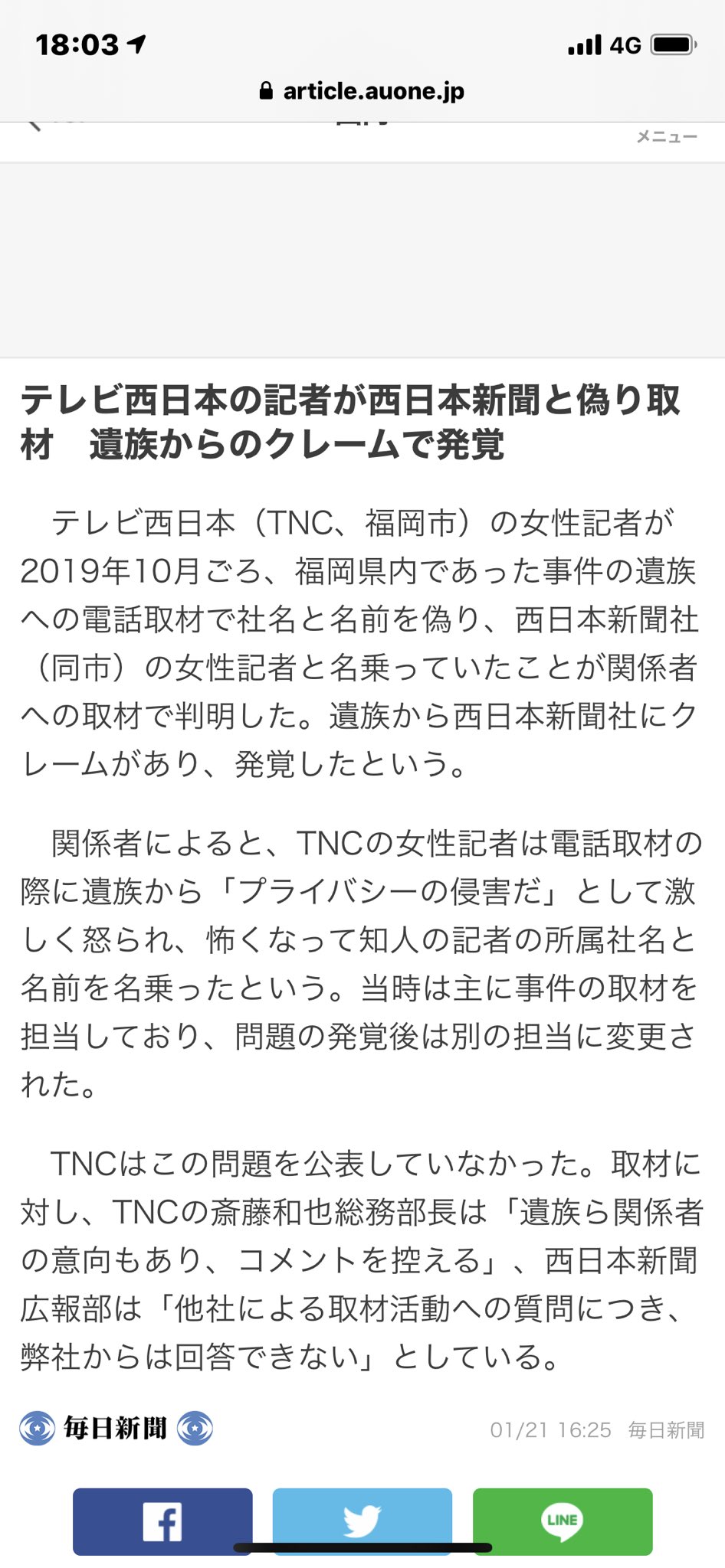 画像 何故か ヤフーニュースなど記事が消されてる キャプチャを残しておきますねテレビ西日本の記者が西日本新聞と偽り取材 遺族からのクレームで発覚 https t まとめダネ