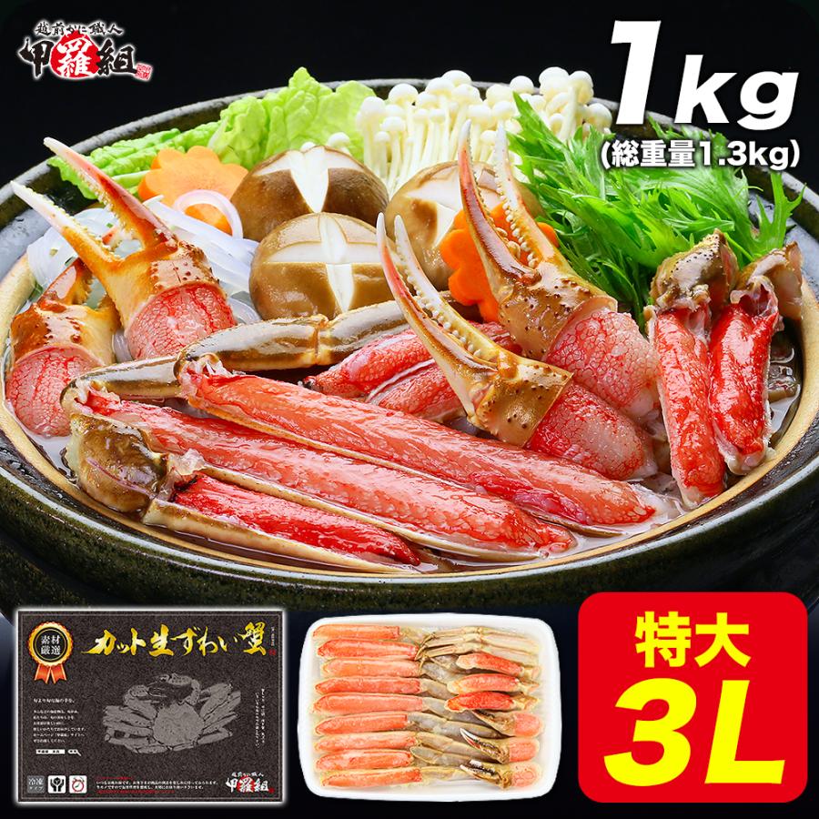 カット生ずわい蟹 黒箱 内容量1000g 特大 3lサイズ お刺身ok ギフト 越前かに職人 甲羅組 通販 paypayモール