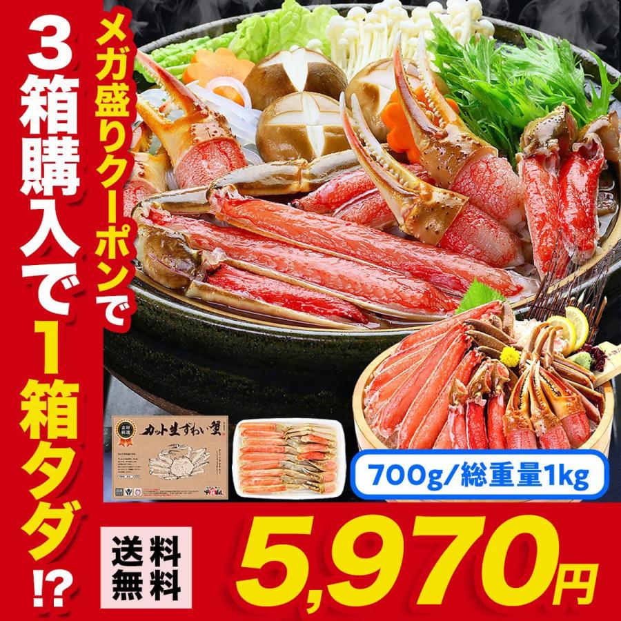 かに カニ 蟹 ズワイガニ 店長大暴走 お刺身ok カット生ずわい蟹 特盛 2 1kg 化粧箱 総重量3kg以上 あすつく