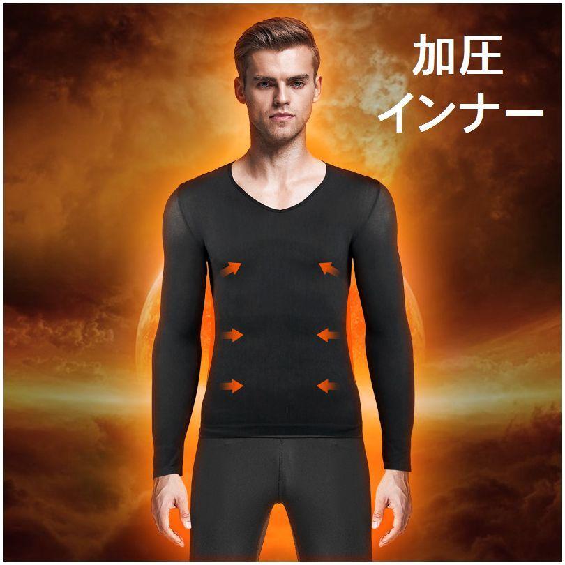 メンズ 加圧インナー 発汗効果 長袖シャツ 着圧インナー ラウンドネック 薄手 ウエスト お腹 腹部 シェイプアップ 引き締め 姿勢矯正 補正 吸湿 inn 14866 おとりよせ com 通販 yahoo ショッピング