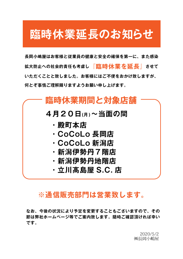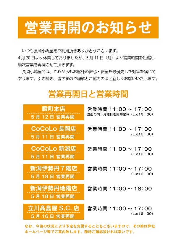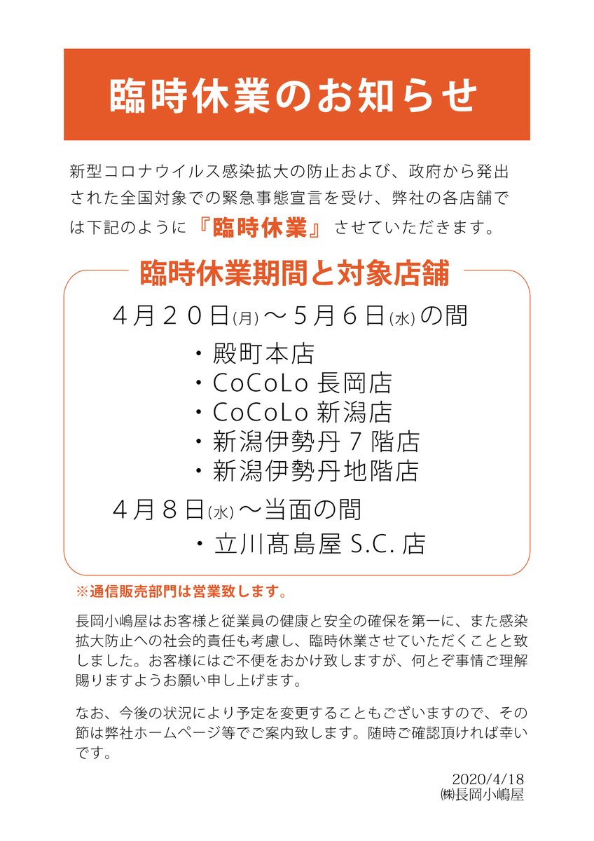 長岡小嶋屋 お世話になっております 長岡小嶋屋です 長岡小嶋屋 本店よりお知らせ 本店限定 facebook