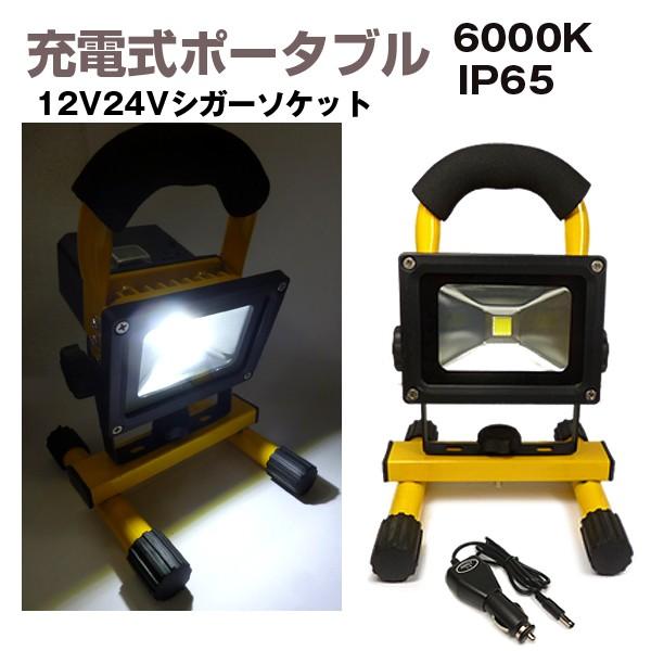 led充電式ポータブル 投光器 10w 角型 12v 24v車シガー充電 ステー付