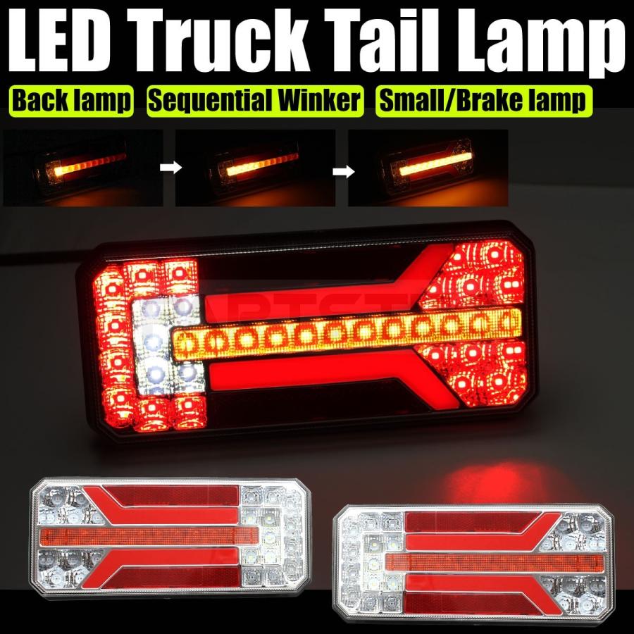 シーケンシャル ファイバー led テールランプ 左右セット 正規品 3連 角型 カスタム 12v 24v 車検対応 保証付 流れる テール トラック用品 部品 外装パーツ