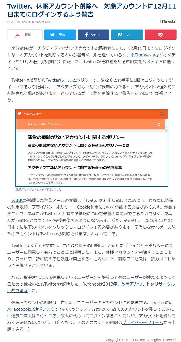 twitter 6ヶ月以内にログインしていないアカウントを12月に削除すると発表 ログインとツイートを推奨 togetter