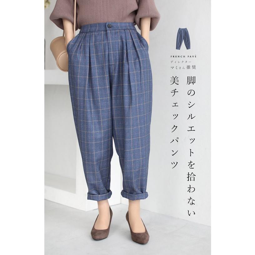 s m l ネイビー french pave 脚のシルエットを拾わない美チェックパンツ11月5日22時販売新作 w68797 french pave 通販 yahoo ショッピング