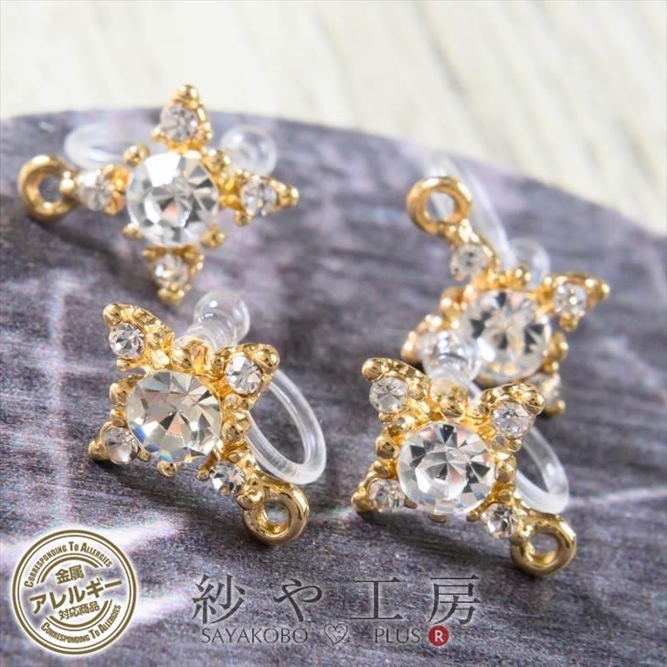 痛くないイヤリング ピナチョコ金具4個 2ペア セット スワロフスキー付きヨコカン イヤリング金具 イヤリングパーツ ハンドメイド 手作り 材料 パーツ