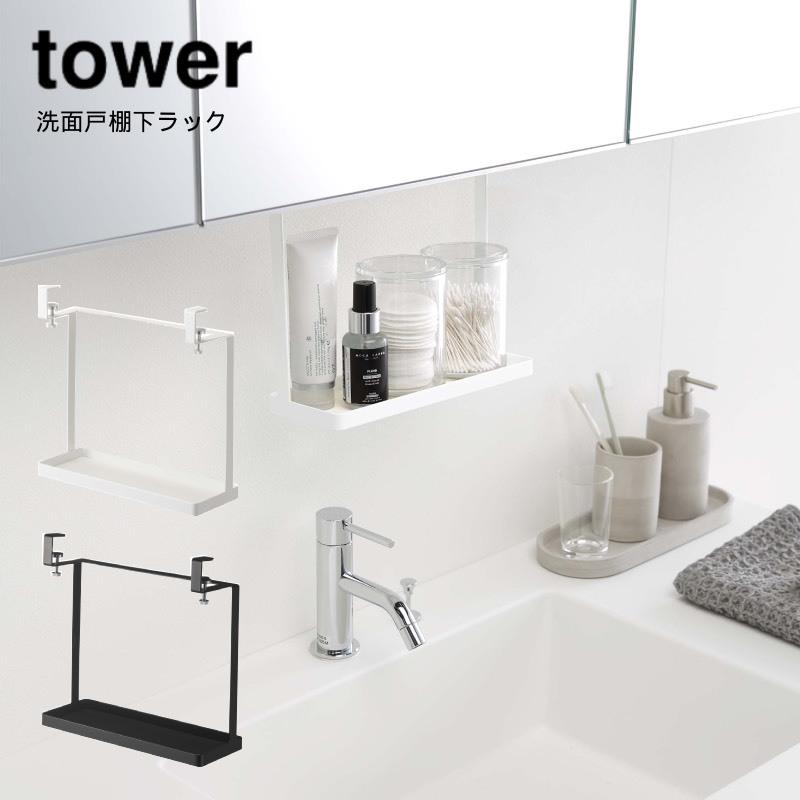 洗面戸棚下ラック タワー tower 洗面台 洗面所 収納 整理 4998 4999 吊り下げ ラック コップ 化粧品 隙間 ハンガー 賃貸 おしゃれ 山崎実業 yamazaki