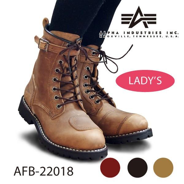 alpha industries アルファ インダストリーズ afb 22018 ブーツ 本革 レディース バイカーブーツ 靴 black brown