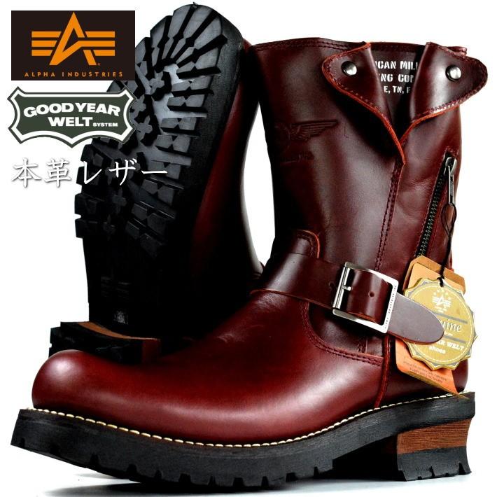 alpha industries アルファ インダストリーズ afb 20019 本革 エンジニアブーツ メンズ バイカー 靴 black brown wine red afb 20019 レッドテント セカンド 通販 yahoo ショッピング