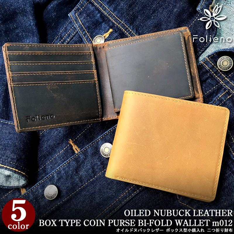 財布 メンズ 二つ折り 日本製 フォリエノ folieno 本革 3素材 ボックス型小銭入れ 二つ折り財布 m012 オイルドヌバック スムース イントレチャート m012 本革財布のfizi 通販 yahoo ショッピング