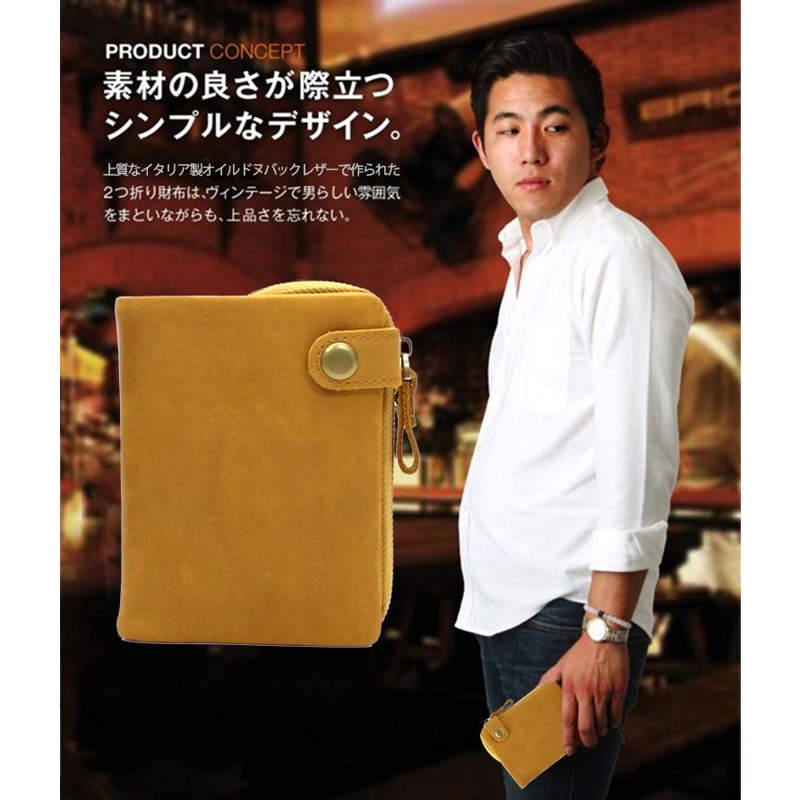 財布 メンズ 二つ折り 日本製 フォリエノ folieno 本革 u字ファスナー オイルドヌバックレザー 二つ折り財布 tg003 イタリアンカーフレザー tg003 本革財布のfizi 通販 yahoo ショッピング