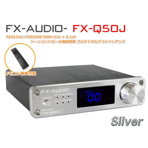 fx audio fx q50j シルバー 2 1chフルデジタルプリメインアンプ tas5342 tas5508 50w 2ch サブウーファーline出力 トーンコントロール機能搭載 リモコン付属