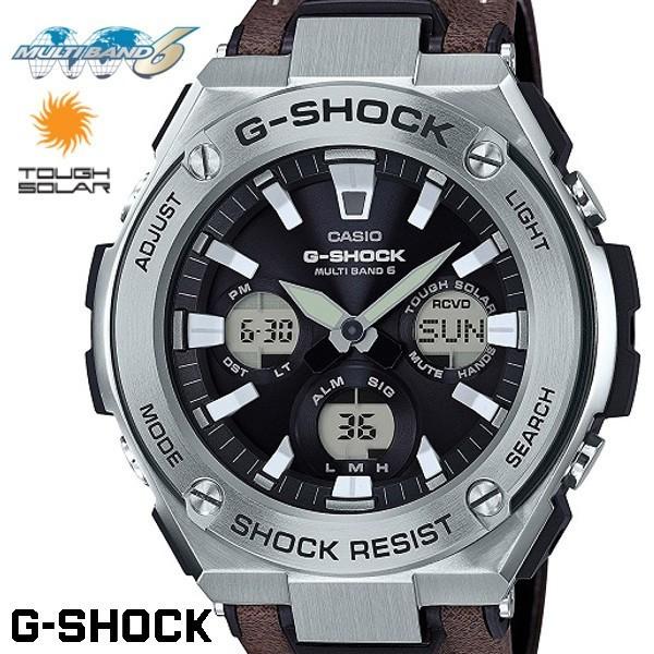 g shock gショック gスチール 海外モデル カシオ 電波ソーラー アナデジ 腕時計 ブラウン レザーベルト gst w130l 1a