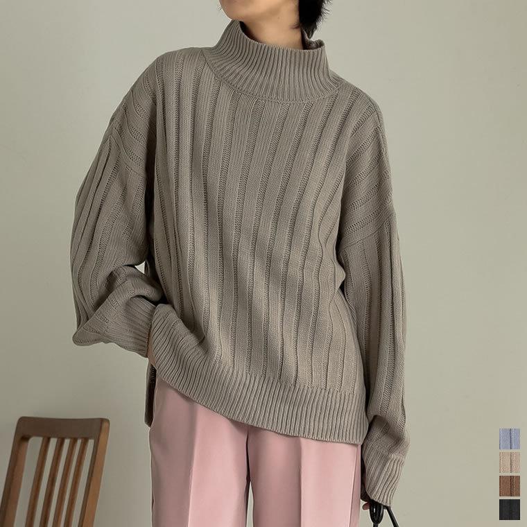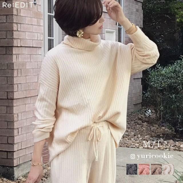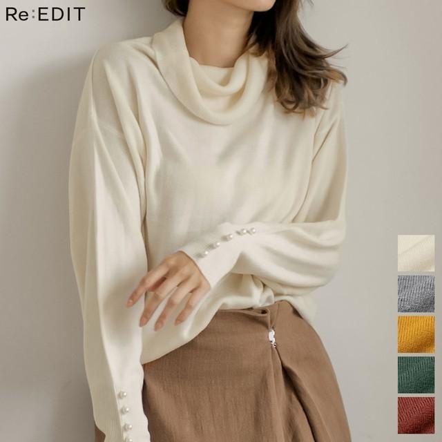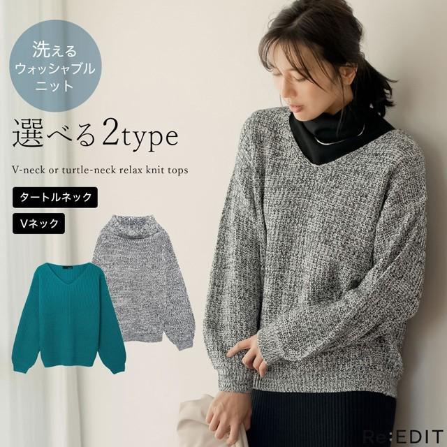 ニット レディース トップス ハイネック ワイドリブニット ボリュームスリーブ バルキー お家で洗える 手洗いできる 133345 reedit リエディ 通販 yahoo ショッピング