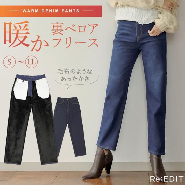 ボトムス レディース 秋冬 ストレート ヒートデニム 裏フリースベロア 裏起毛 裏ファー 131060 reedit リエディ 通販 yahoo ショッピング
