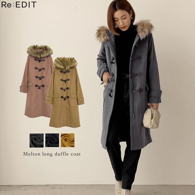 コート レディース ダッフルコート アウター フード付き ファーフード メルトン 131180 reedit リエディ 通販 yahoo ショッピング