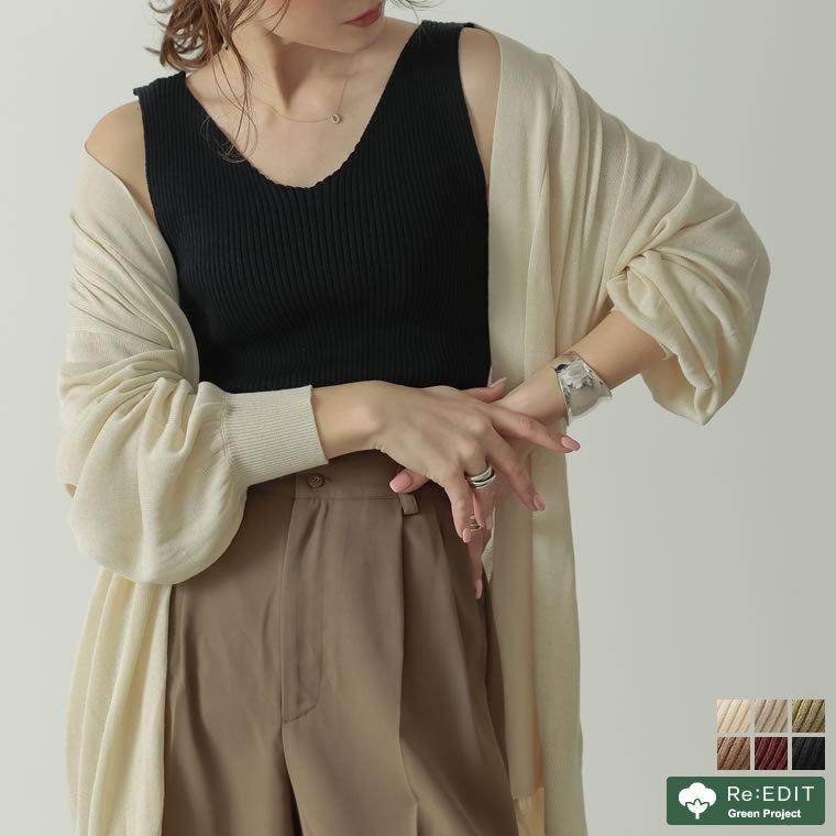 タンクトップ レディース トップス サマーニット オーガニックコットン vネック ノースリーブ ストレッチ 涼感 サステナブル 2021春夏カラー 131407 reedit リエディ 通販 yahoo ショッピング