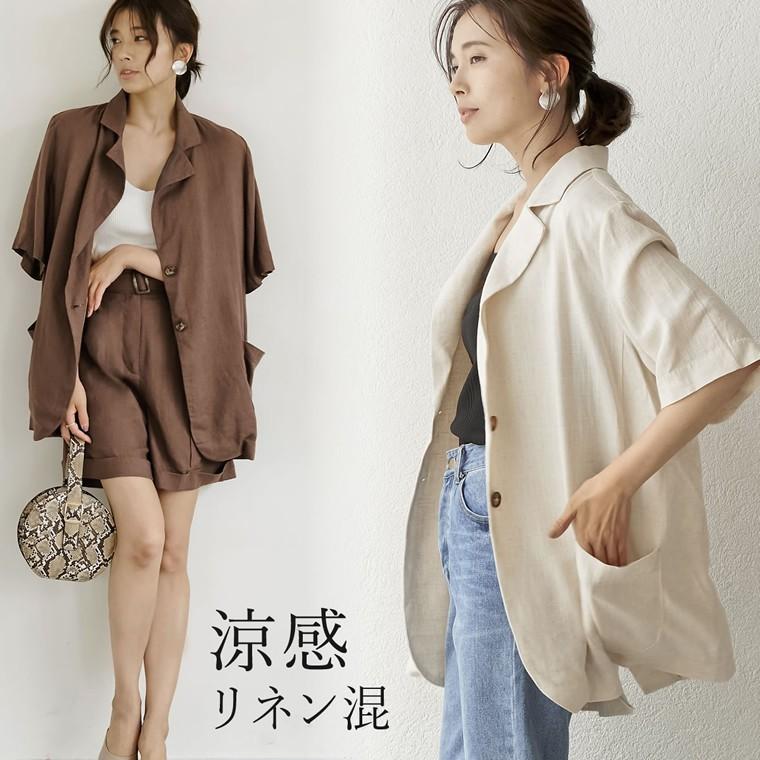シャツ トップス レディース ジャケット サマージャケット ライトアウター リネン混 リネンブレンド レーヨン混 132146 reedit リエディ 通販 yahoo ショッピング