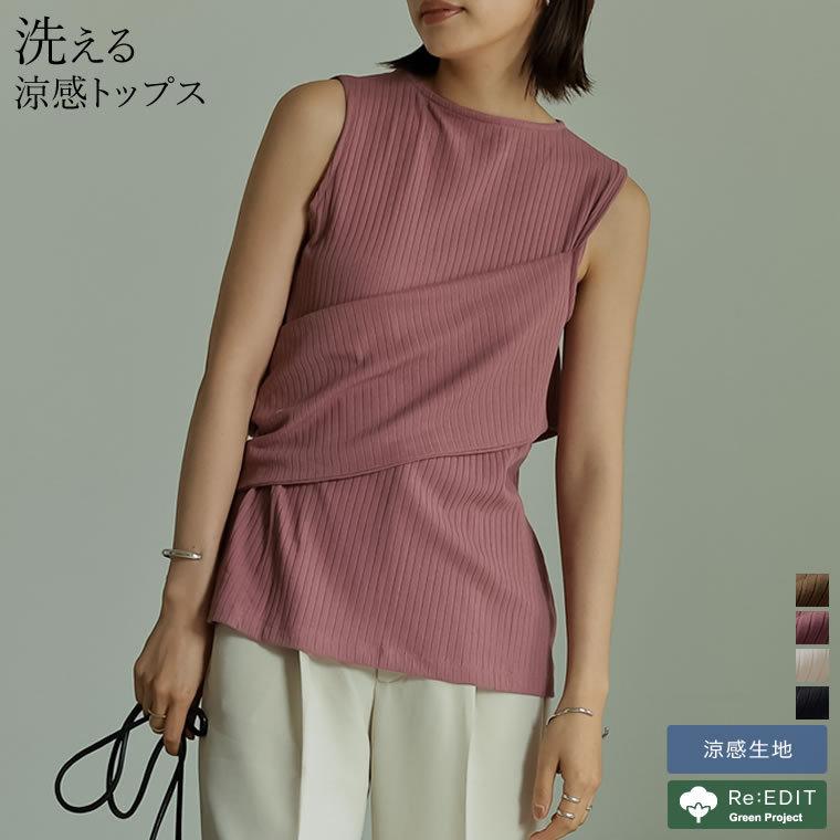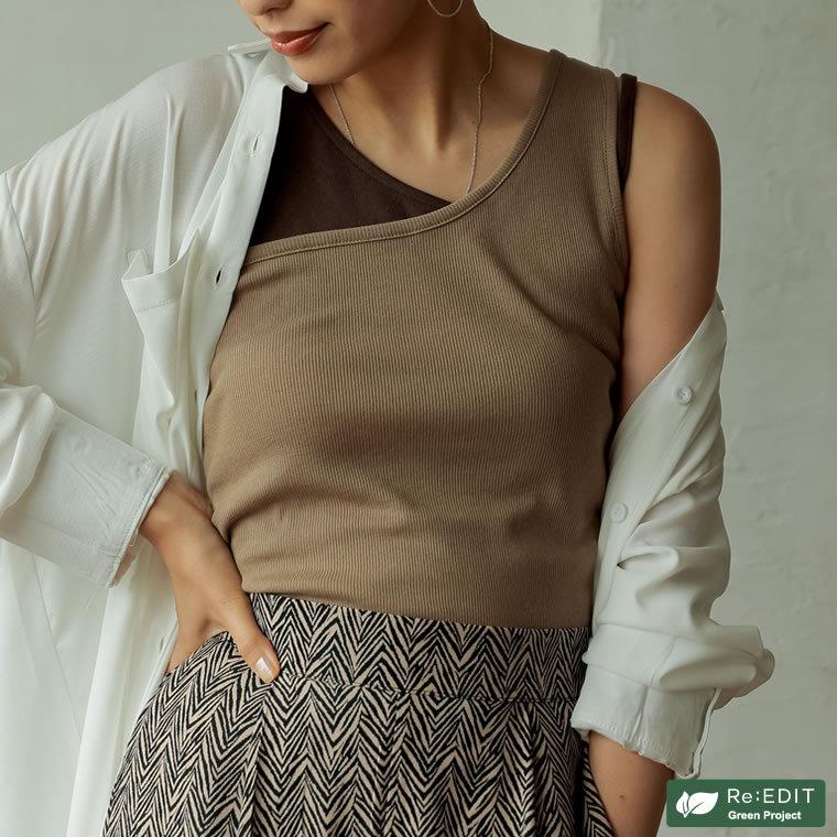タンクトップ レディース リブトップス トップス ノースリーブ カットソー レイヤード風 アシンメトリー アシメ 132915 reedit リエディ 通販 yahoo ショッピング