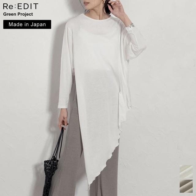 アウトレットセール カットソー レディース チュニック トップス アシンメトリー 長袖 re edit green 132438 reedit リエディ 通販 yahoo ショッピング