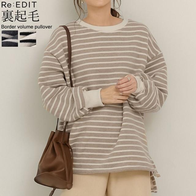 トップス 長袖 ボーダー リラックス オーバーサイズ 裏起毛 ルームウェア 部屋着 132970 reedit リエディ 通販 yahoo ショッピング