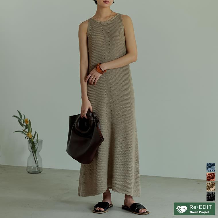 ニットワンピース レディース サマーニット リネン混ニット ノースリーブ ロング丈 マキシ丈 サステナブル エシカル 133159 reedit リエディ 通販 yahoo ショッピング
