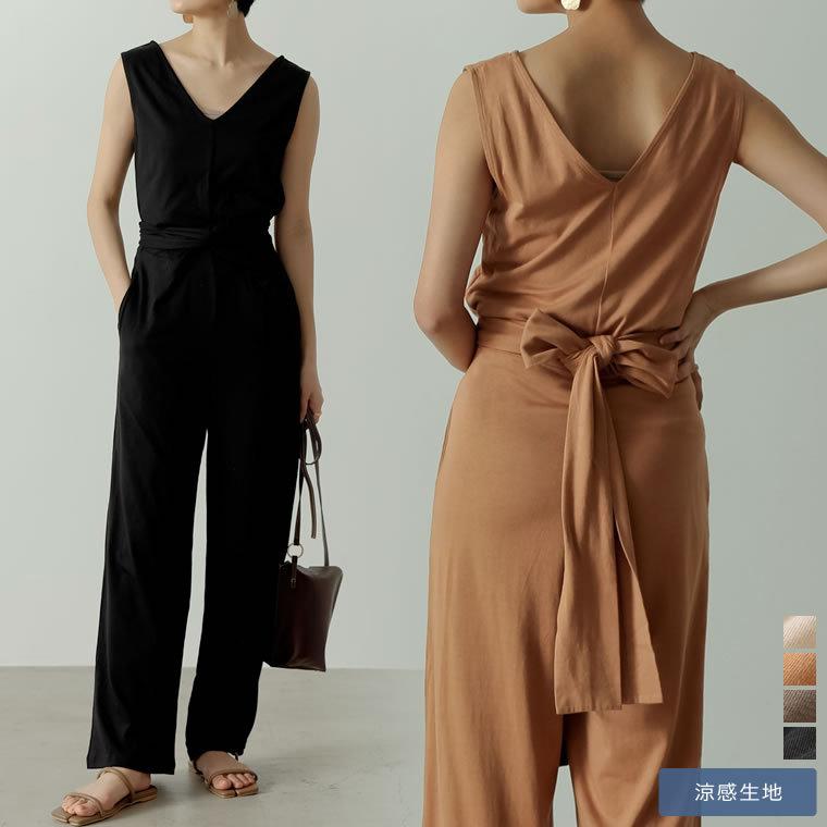 オールインワン レディース サロペット ひんやり 接触冷感 ストレッチ カットソー 両vネック 133250 reedit リエディ 通販 yahoo ショッピング