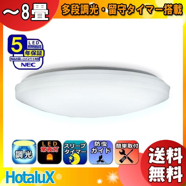 送料無料 ホタルクス nec hldz08208 ledシーリングライト 8畳 調光 昼光色 スリープタイマー かんたん留守タイマー 5年保証 日本製 hldz08203
