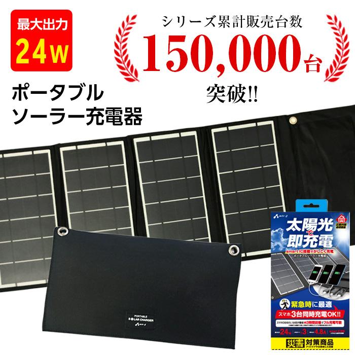ポータブルソーラー充電器 太陽光充電 最大出力24w usbポート3ヶ付き smart ic搭載 自動判別 緊急 充電器 aj solar24w エアージェイ yahoo 店 通販 yahoo ショッピング
