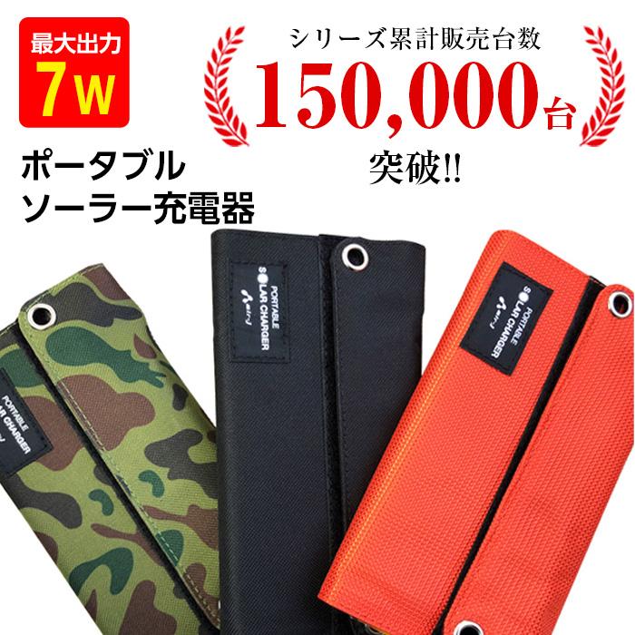 ポータブルソーラー充電器 太陽光充電 最大出力7w usbポート付 緊急 充電器 アイフォン アンドロイド ブラック カモフラージュ オレンジ アウトドア 災害 aj solar7w エアージェイyahoo ショッピング店 通販 yahoo ショッピング
