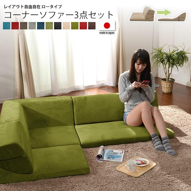ソファ 日本製 コーナー 3点セット コーナーソファ コーナーソファー iori 和楽の庵 ロータイプ ソファー フロアソファ ローソファー
