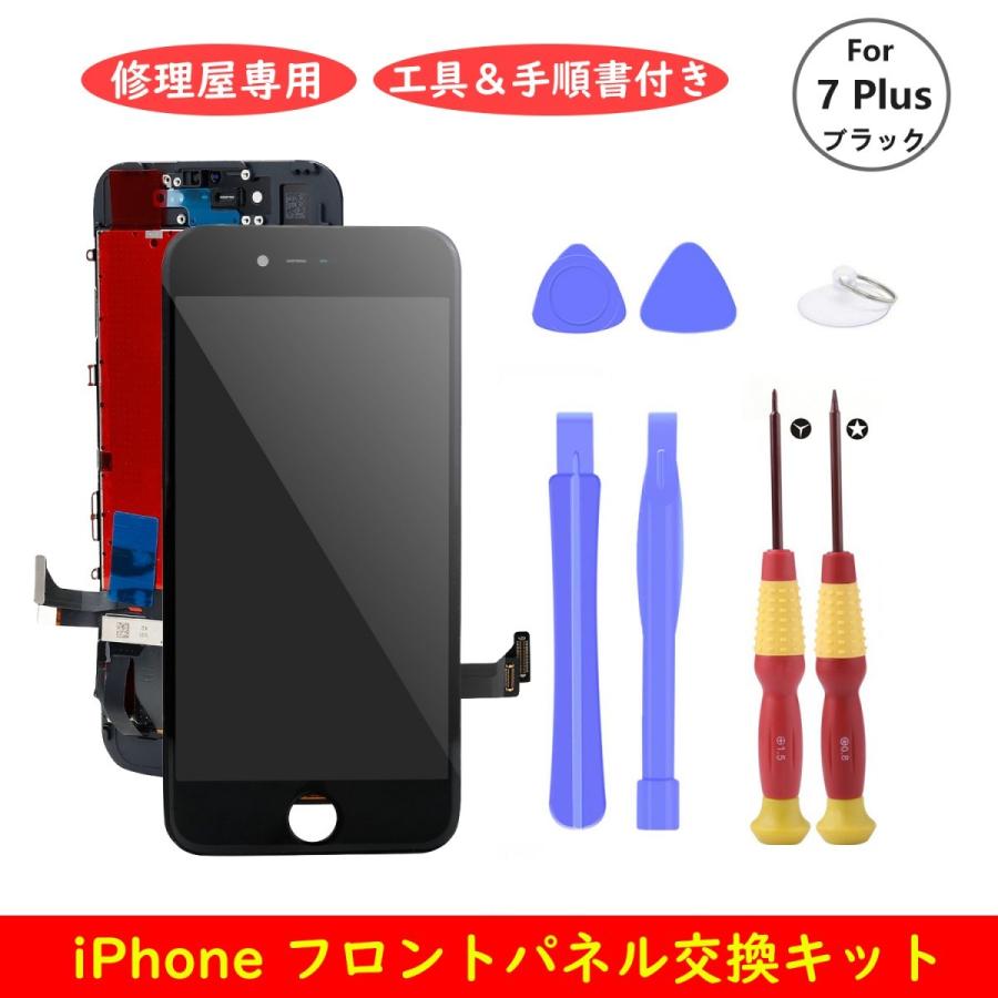 amazon flylinktech iphone フロントパネル タッチパネル 液晶パネル 修理交換用タッチパネルフロントガラス デジタイザ ガラス修理 液晶パネル 強化ガラスフィルム 修理工具セット付き iphone7 plus ブラック 修理パーツ 通販