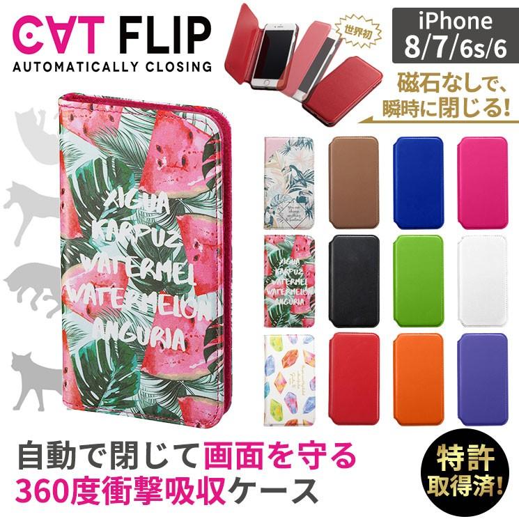 cat flip iphonese 第2世代 8 7 6s 6対応 手帳型 スマホケース 自動で閉じて画面を守る 磁石無し カード収納 レッド ブラウン ブラック オレンジ グリーン ネイビー ピンク パープル ホワイト サンクレスト 公式 サンクレスト 楽天市場店