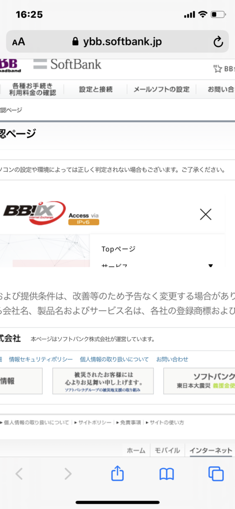 ipv6接続確認ページ yahoo bb adsl adsl 光 ブロードバンド softbank
