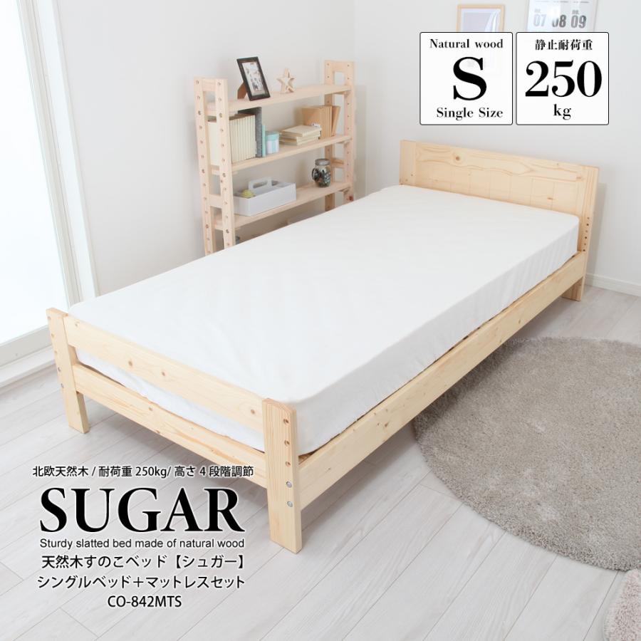 マットレスセット 耐荷重250kg 高さ4段階調節できる天然木すのこベッド シュガー 圧縮ロールボンネルコイルマットレス付 シングルベッド co 842mts jajan annex 通販 yahoo ショッピング