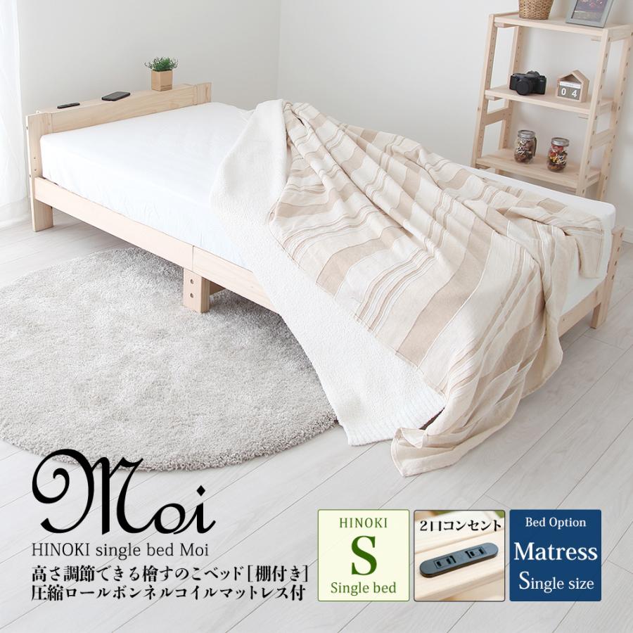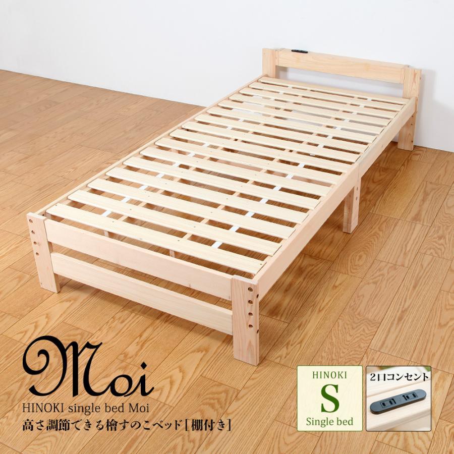 高さ調節できる檜すのこベッド 棚付き シングルベッド 高さ3段階調節 2口コンセント付 モイ jhb 100r jajan annex 通販 yahoo ショッピング