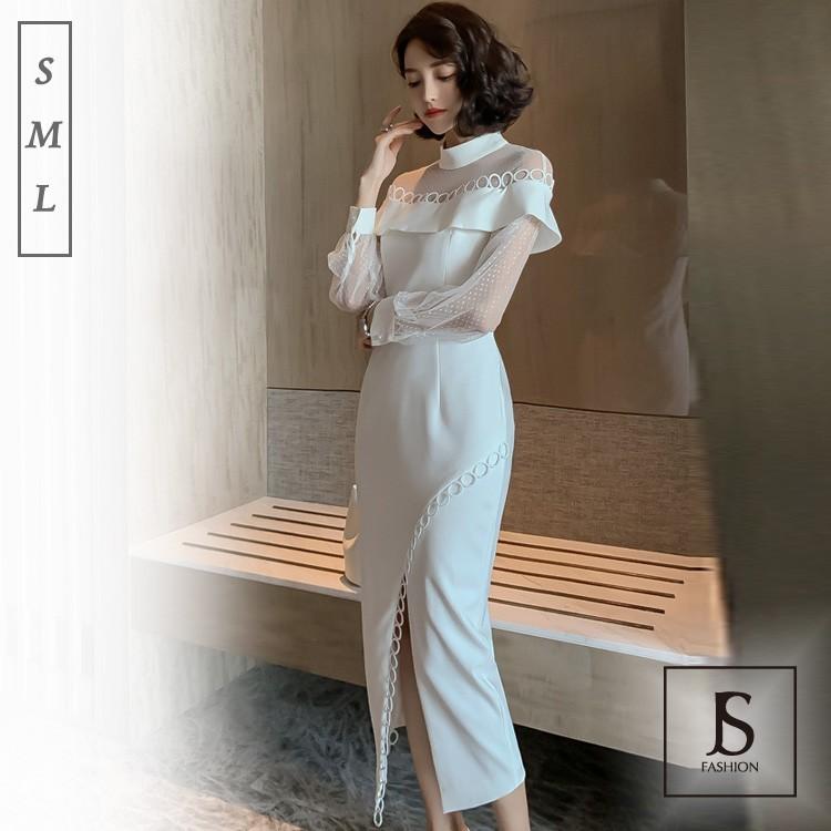 パーティードレス ビジュー飾り シースルー袖 バイカラーワンピース ブラックドレス ショート丈 ミニワンピース きれいめ jsファッション jy8300005 js fashion 通販 yahoo ショッピング