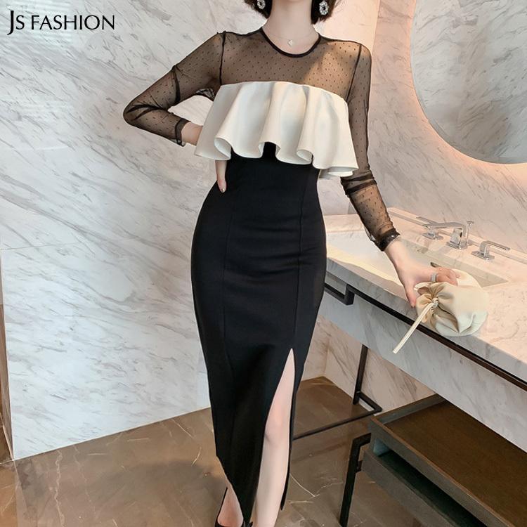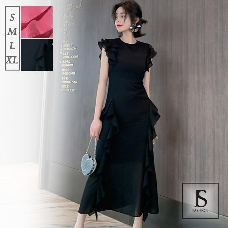 レース切替 フリルロング丈aラインワンピース ロングドレス ブラックドレス パーティードレス 大きいサイズ エレガント jsファッション wyx80124 js fashion 通販 yahoo ショッピング