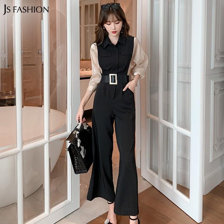 在庫処分セール セットアップ シースルー袖トップスとサロペット2点セット サスペンダー ロングパンツ 春夏 きれいめ jsファッション qy8290027 js fashion 通販 yahoo ショッピング