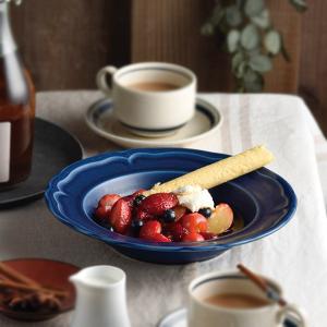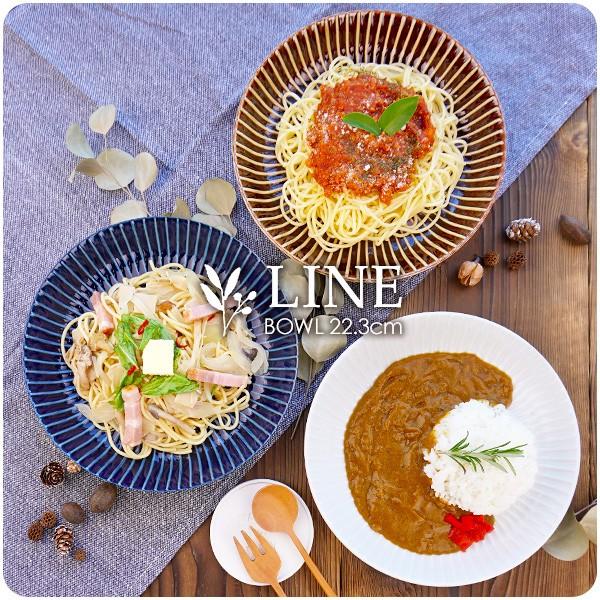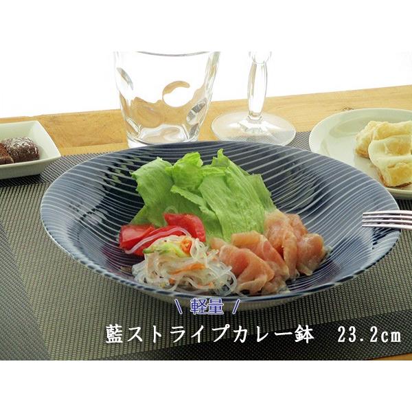軽量 藍ストライプカレー鉢 23 2cm happy collection 日本製 美濃焼 カレー パスタ皿 アウトレット込 洋食器 和食器