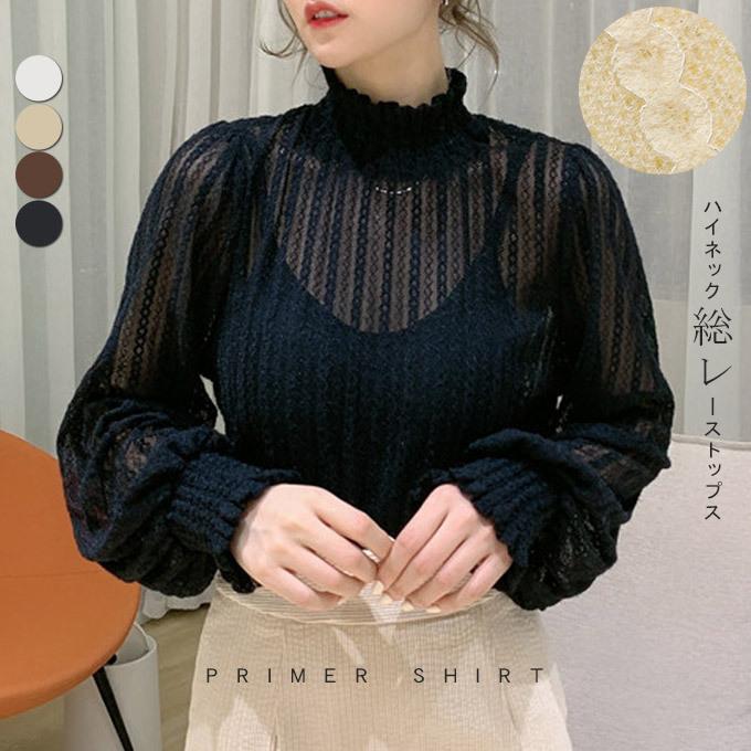 ブラウス レディース ハイネック 総レース トップス 透け感 シアー ゴムシャーリング バルーン袖 04tp9387 夏黎 通販 yahoo ショッピング