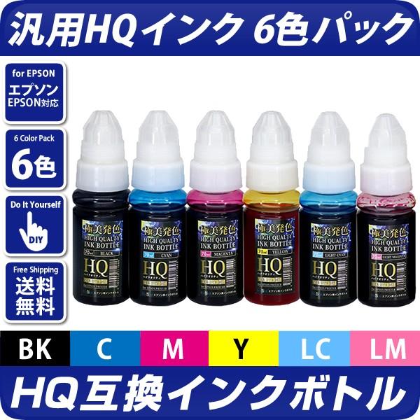 hq epson社汎用インクボトル6色パック ciss用 互換インク エプソンプリンター対応 epsonプリンター用 染料インク 70ml