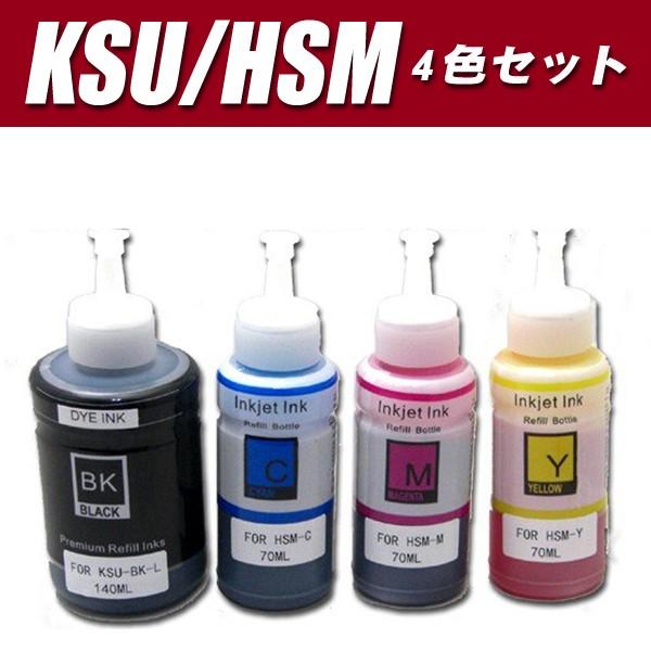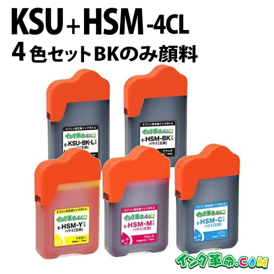 ksu クツ hsm ハサミ 互換 エプソン エコタンク用 4色 5本 セット ksu bk l hsm c hsm m hsm y 黒は2本で140ml インクボトル ew m660ft ew m5071ft ksu hsm 4cl インクのチップスyahoo 店 通販