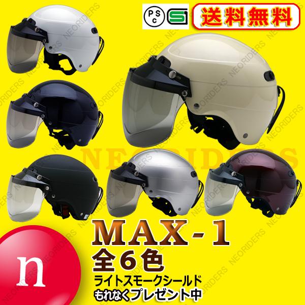 バイク ヘルメット ハーフヘルメット max 1 全6色 ハーフヘルメット シールドプレゼント