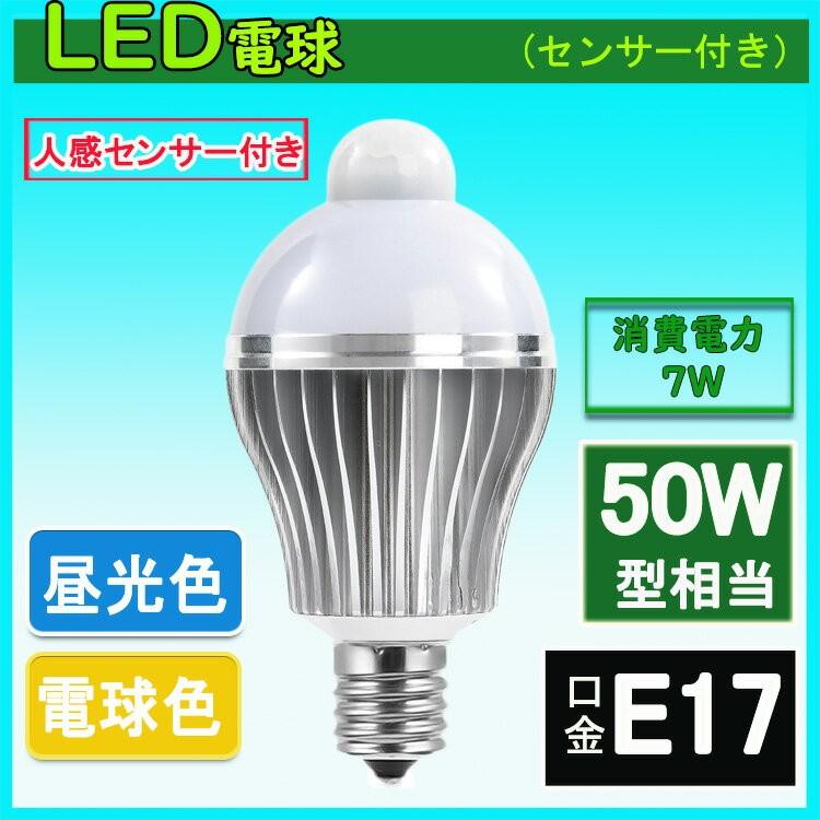led電球 人感センサー付 e17口金 7w 50w相当 自動点灯消灯 節電対策 電球色 昼光色 jg 7w e17 nissin lux 通販 yahoo ショッピング