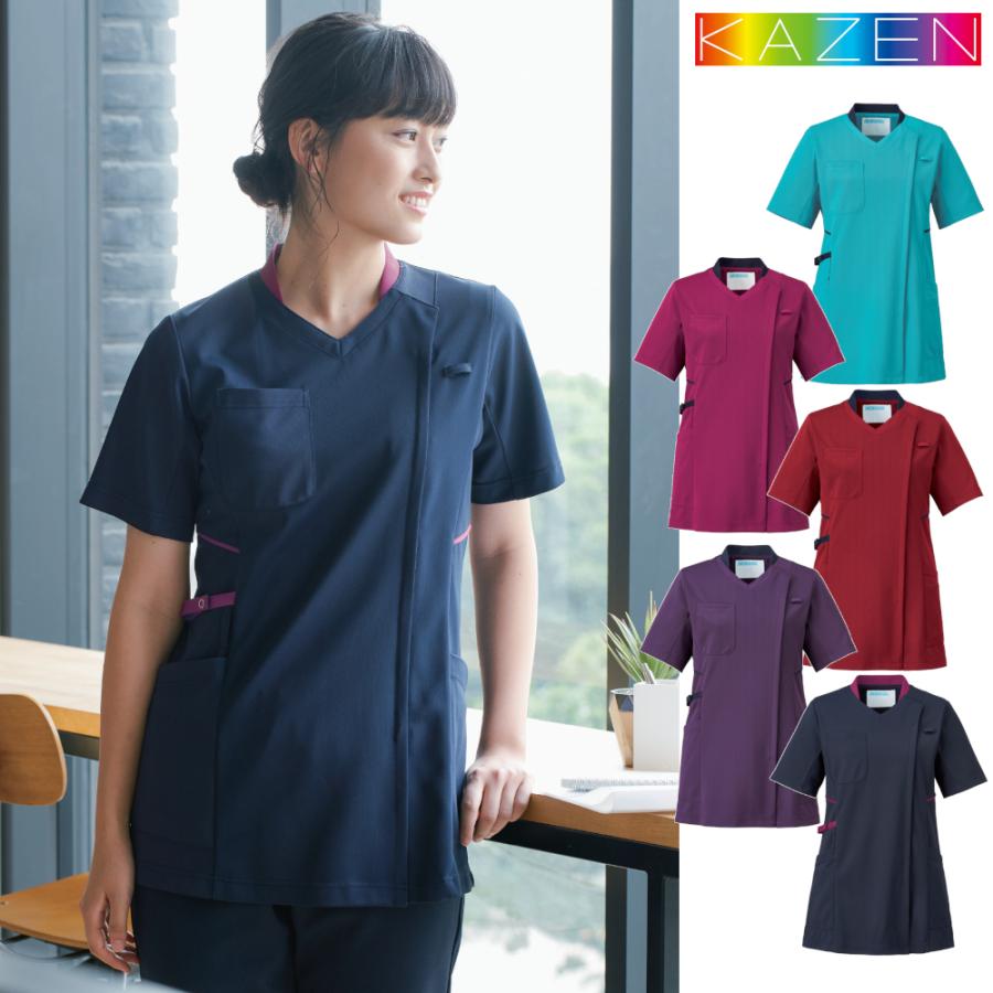白衣 ケーシー ジャケット カゼン レディス医務衣半袖 262 10 11 オフホワイト サックス ジップアップ 制菌加工 透け防止 ストレッチ kzn 262 10 メディ ウェア 通販 yahoo ショッピング