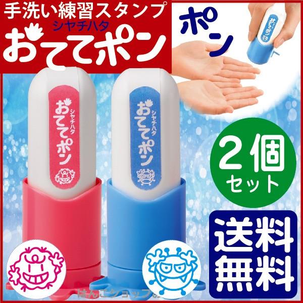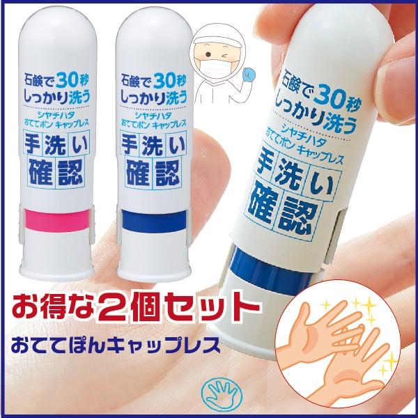 シャチハタ おててポン キャップレス 2個パック 手洗い練習スタンプ 予防 対策 新型肺炎 qさま qさま