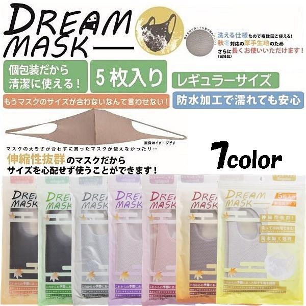 マスク dream mask 5枚入り ブラック グレー ライトグレー パープル ピンク ベージュ アイボリー 洗えるマスク 伸縮性抜群 快適 防水 フィット 送料無料