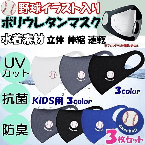 マスク 洗える ポリウレタン 水着素材 個包装 3枚セット 野球 男女兼用 子供用 uvカット 抗菌 防臭 速乾 伸縮 立体 ウィルス対策 送料無料
