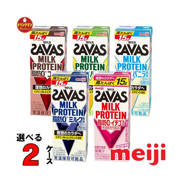 明治 savas ザバス milk protein ミルクプロテイン 脂肪0 200ml ココア バナナ 2種類 各1ケース 計48本 セット